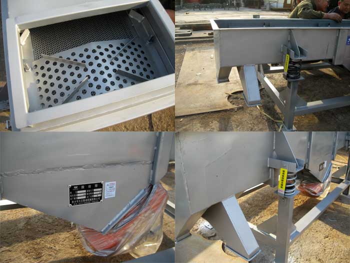 直線振動(dòng)篩是種比較常見(jiàn)的振動(dòng)篩分設(shè)備,利用振動(dòng)電機(jī)激振作為振動(dòng)動(dòng)力來(lái)源,使物料在篩網(wǎng)上被拋起,同時(shí)向前作直線運(yùn)動(dòng),物料從給料機(jī)均勻地進(jìn)入篩分機(jī)的進(jìn)料口,通過(guò)多層篩網(wǎng)產(chǎn)生數(shù)種規(guī)格的篩上物、篩下物、分別從各自的出口排出。
