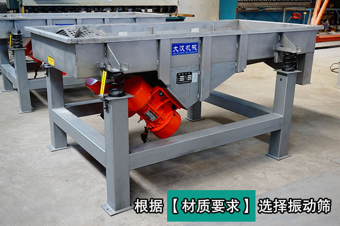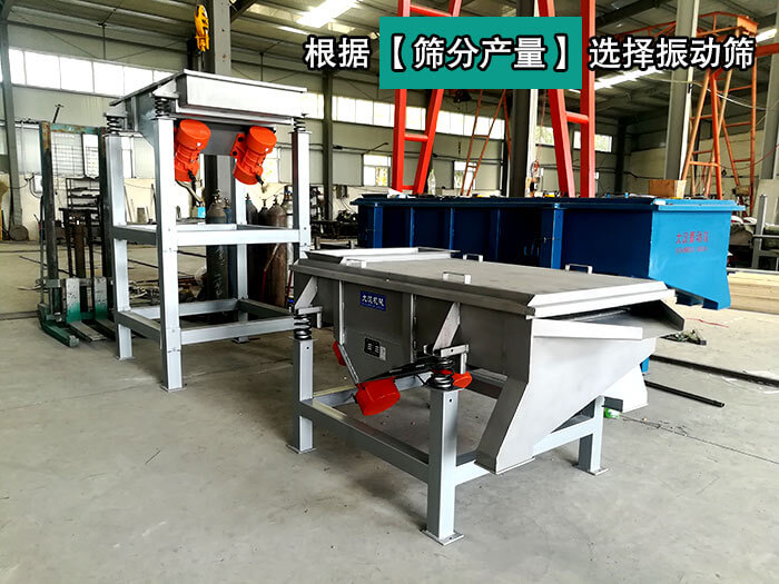 產(chǎn)量低時(shí),可選用小型號的直線振動篩,如;產(chǎn)量高時(shí),可選用大型號的直線振動篩,如電機(jī)功率也需要根據(jù)直線振動篩產(chǎn)量大小來選擇合適的型號。