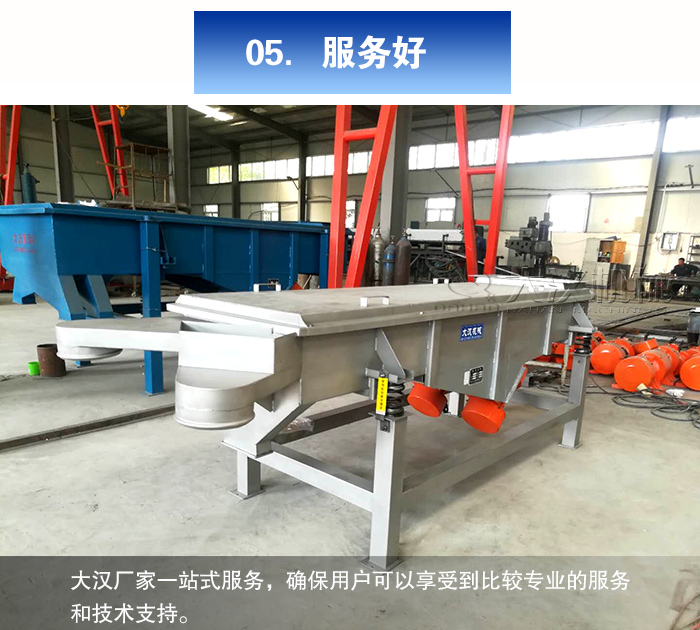 大漢多層直線振動篩廠家在選材上精益求精,保證每次進廠的原材料及相關材料都是進行質量檢測合格之后才使用的,其他廠家的多層直線振動篩板材厚度般在4mm-5mm之間,而我們的設備板材厚度直維持在10mm-12mm,設備安全性更高,運行更加平穩(wěn)。