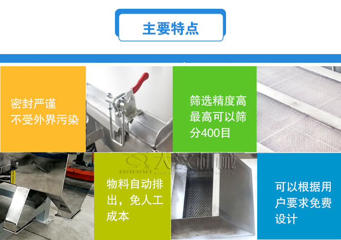 2、篩選精度高,高可以篩分400目,篩分精度可以達(dá)到96%以上;