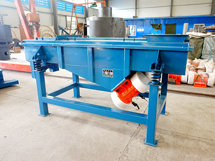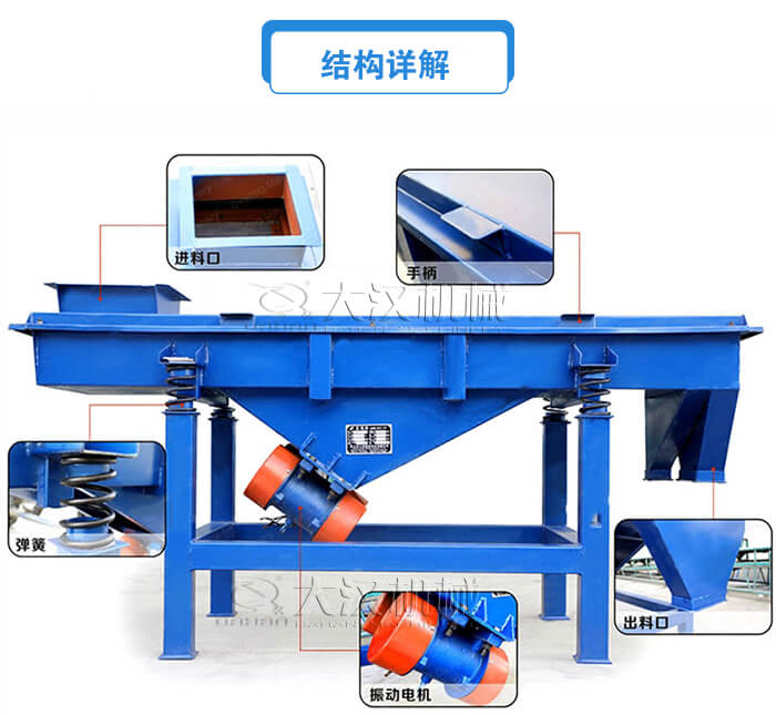 高頻直線振動篩主要由篩箱、篩框、篩網(wǎng)、振動電機(jī)、電機(jī)臺座、減振彈簧、支架等組成。