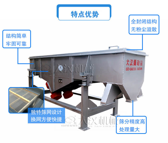 2、直線篩采用全封閉結(jié)構(gòu),無粉塵溢散,自動(dòng)排料,更適合于24小時(shí)流水線作業(yè);