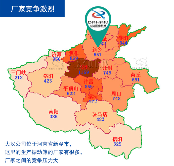 大漢公司位于河南省新鄉(xiāng)市,這里的生產(chǎn)振動(dòng)篩的廠家有很多,廠家之間的競(jìng)爭(zhēng)壓力大,廠家之間為了形成更大的優(yōu)勢(shì),在焦炭直線振動(dòng)篩價(jià)格上降低了許多,以此來吸引用戶購買,所以新鄉(xiāng)焦炭振動(dòng)篩價(jià)格普遍都不算太高,更利于用戶購買。