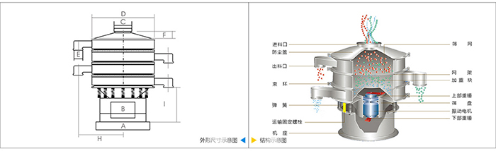 其結(jié)構(gòu)可以簡單分為,篩框篩網(wǎng)機蓋、底座和電機;內(nèi)部還裝有彈跳球,密封件等。整機一般采用304不銹鋼材質(zhì),為節(jié)省成本,也可將底座換成碳鋼材質(zhì),不會對物料造成影響但其底座會出現(xiàn)生銹掉漆的現(xiàn)象,小編還是建議大家選用全不銹鋼材質(zhì)的;同時其內(nèi)部彈跳球、密封件皆采用硅膠材質(zhì),安全衛(wèi)生。