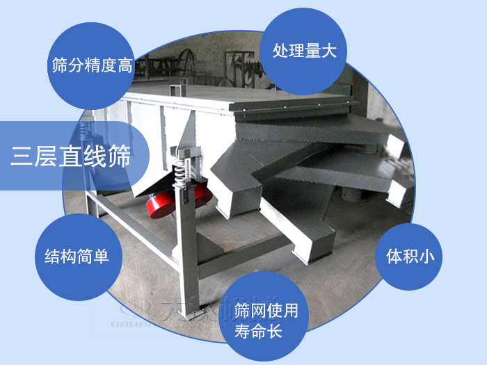 520三層直線振動篩體積小,移動方便,篩分精度高、處理量大、結(jié)構(gòu)簡單、耗能少、噪音低、篩網(wǎng)使用壽命長、密封性好、無粉塵溢散、維修方便、可用于流水線生產(chǎn)中的自動化作業(yè)。