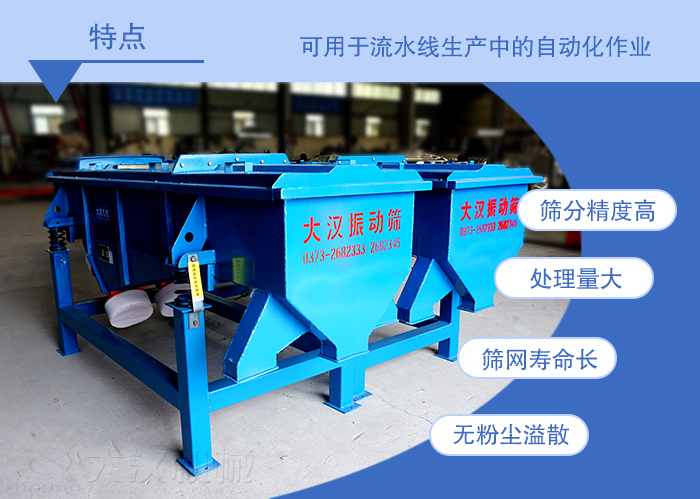 碳鋼直線振動篩結(jié)構(gòu)簡單、耗能少、噪音低、篩網(wǎng)使用壽命長、密封性好、無粉塵溢散、維修方便、可用于流水線生產(chǎn)中的自動化作業(yè)。